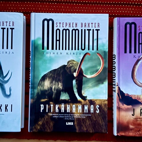 Terry Pratchett inkin kanssa kirjoittaneen brittiläisen scifikirjailijan maammuti -sarja hyväkuntoisena ja kovakantisena 20e posteineen (tai nouto Raisio)