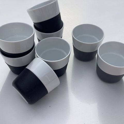 Myydään hyväkuntoiset, pari kertaa käytetyt, harmaavalkoiset Eva Solo kulhot 2 kpl, n. 4 dl. Silikonisuojus.