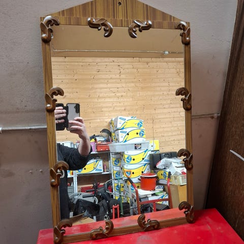 Kehyksineen 50 cm*50 cm, peili 30 cm*30 cm.