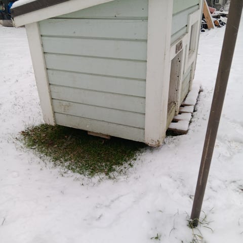 Korkeus 107 cm, leveys 119 cm, syvyys 129 cm. Mitat leveimmältä ja korkeimmalta kohdilta. Maalattu kesällä 2023. Katto irrallinen. Koppi ei ole eristetty.