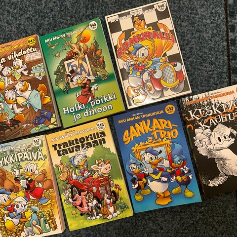 Myydään 9 kappaletta Aku Ankan Taskukirjoja. Numerot 3, 19, 54, 57, 59, 68, 75, 76 ja 167. Kunto vaihtelee kohtalaisesta hyvään. Myydään vain settinä