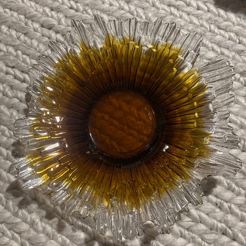 Kirkas lasilautanen Halinalle kuvalla. Lautasessa lukee TCFC 1987