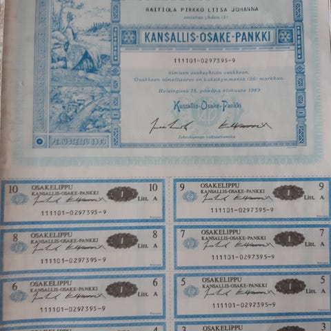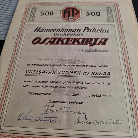Myydään vanha hyväkuntoinen Kaskö Woodin osakekirja no 392 vuodelta 1922. Osakekirjan nykyinen omistaja/myyjä on osakeyhtiön perustajaosakkaan perikunta. Hinta on 50 euroa sisältäen normaalin postituksen kirjeenä. Katso myös muut edulliset tuotteeni Tori.fi:ssä.