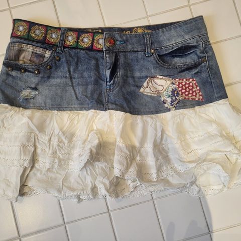 Myydään hyväkuntoinen Desigual farkkuhame, koko 28 tuumaa. Pituus 50 cm.