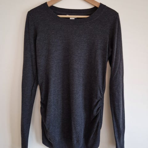 Myydään H&M maman mustavalkoinen ohut äitiysneule, jossa rypytys vatsan kohdalla. Koko M.