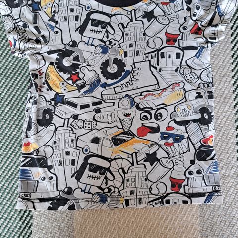 Myynnissä POPin hihaton paita koossa 122/128. Paidassa sinisiä palmuja.