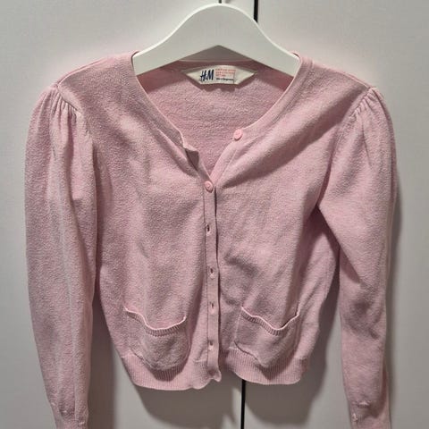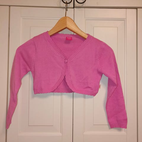 Myydän valkoinen bolero, lyhyt villatakki, pitkät hihat. Koko 122 cm. Merkki Giraf.