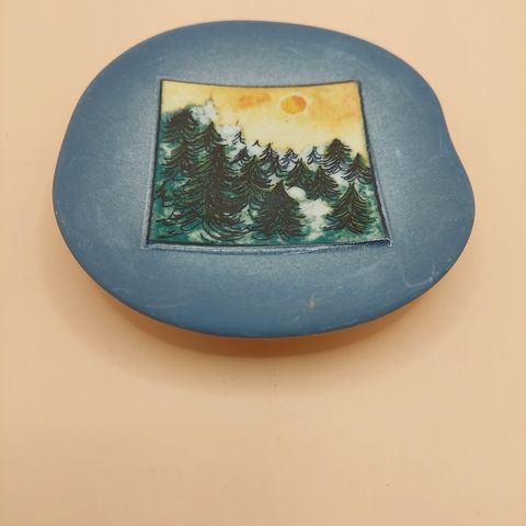 Arabia Heljä Liukko-Sundströmin suunnittelema seinälautanen 12,5x12,5cm kokoisena. Kuvapuolella ei jälkiä tai lohkeamia.