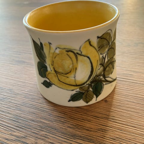 Myydään Hilkka-Liisa Aholan käsinmaalattu maljakko Sininen ruusu.