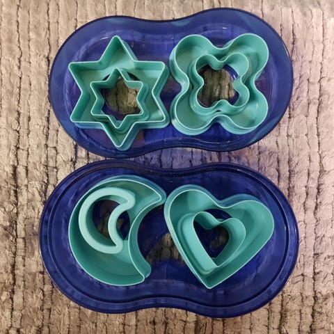 Vanhat, mutta täysin käyttämättömät Tupperware piparkakkumuotit. Paketissa ainakin sydänmuotti,perinteinen piparimuotti ja tähtimuotti. En viitsisi avata pakkausta.
