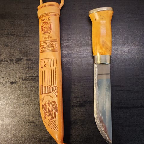 Puukon kokonaispituus 268 mm ja terän pituus noin 150 mm .