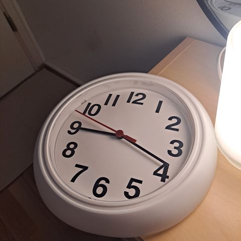 Yksi tumma pläntti valkoisessa osassa, ja jokunen kraapu, eivät haittaa käyttöä. Pituus 35 cm. Kellotauluosan läpimitta 16 cm