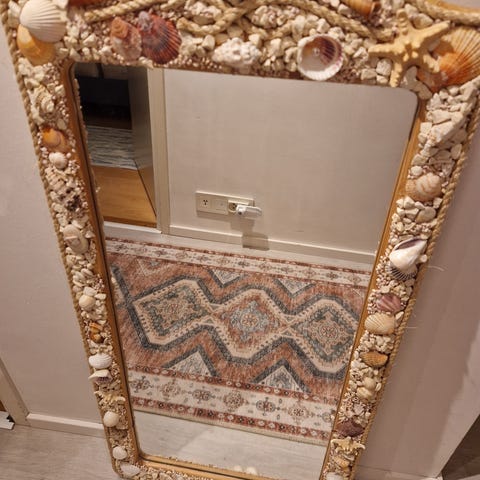 Kaunis peili, jossa kullan värinen laivakuvio,