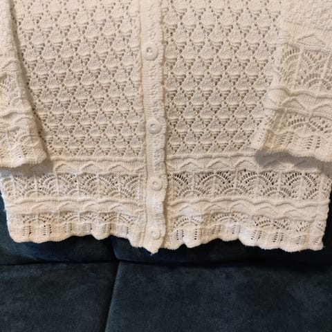Siisti ja ok kuntoinen pitkähihainen puuvilla neuletakki. Käytetty. Pinnassa pesunukkaa. Ehkä jo vähän kulahtanut .. On siinä rajalla että mietin laittaakko myyntiin vai roskiin. Eli tästä löytyikin sitten useampi haalistunut tahra mm hihasta ja kuvassa näkyykin edessä oleva tahra. Materiaali puuvillaa ja pysynyt runsaasta pesusta huolimatta ok kunnossa. Ehkä tästä voisi tuunata jtn kivaa! Takki on avoin edestä. Einapitusta.