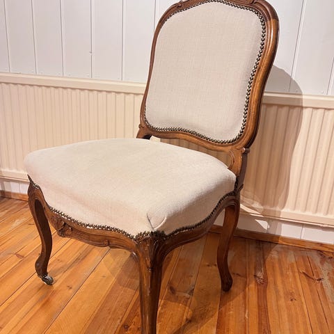 Werner Westin suunnittelema tuoli. Istuimen keinonahkaverhoilussa vaurio, muuten hyväkuntoinen.