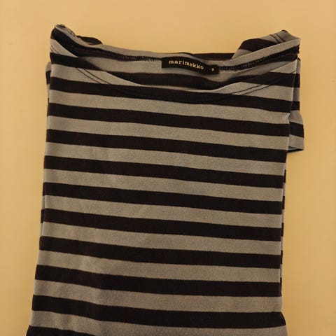 Myynnissä Marimekko raita paita, koko M. Paita on siisti ja hyväkuntoinen. Materiaali 100 % puuvilla. Mitat kainalo-kainalo 45 cm ja niska-helma 52 cm. Postikulut ostajalle 5,- euroa tai nouto Ruoholahdesta.