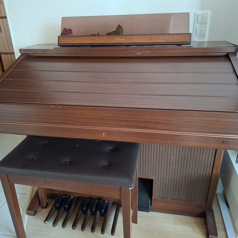 Toimii muuten, mutta rytmikone on mykkä. Ollut vuosia käyttämättömänä eikä ole tutkittu mikä vikana. Päällisin puolin siisti ja tuolikin löytyy. Mieluusti nouto, mutta tuonti lähialueelle onnistuu.