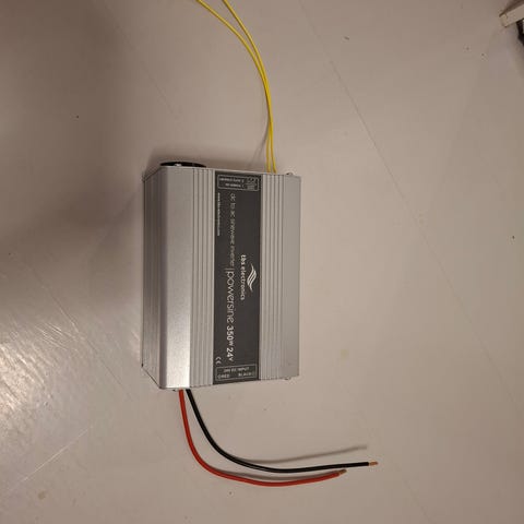 Inverter 12 volttia ja 300 Wattia eli 12 voltista saadaan 230 voltin käyttöjännite moneen käyttöön. On minulla myös yksi tehokkaampi sovetuu TV:n katseluun, micron, kahvikeittimen, tietokoneen käyttöön.