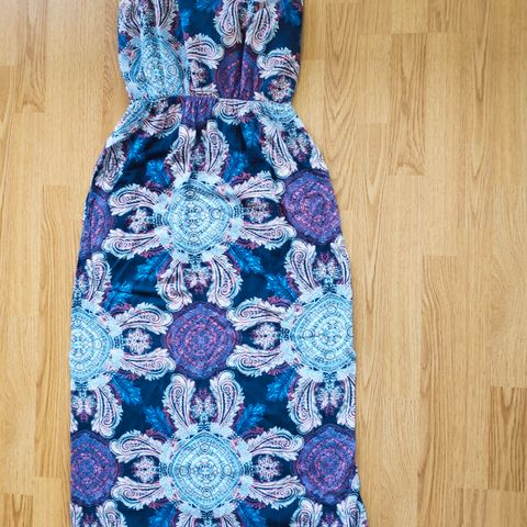 Kaunis, kevyt VeroModa mekko. Koko M. Spagettiolkaimet. Tummansininen, jossa kukkakuvioita. Vyötäröllä kumilanka ja vyötärönympärys 80-100 cm. Spagettiolkaimet. K-k 96 cm. Pituus kainalosta helmaan 77 cm. Vuori. 100 % polyesteri. Käyttämätön. Pm. 8.90e.