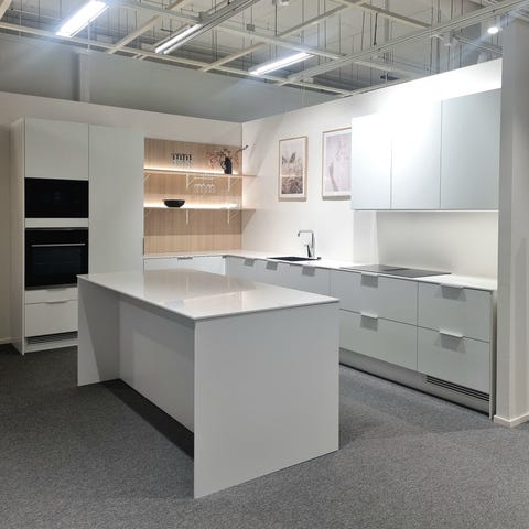 Lasivitriini, LED-valaistus ja pyörät alla.