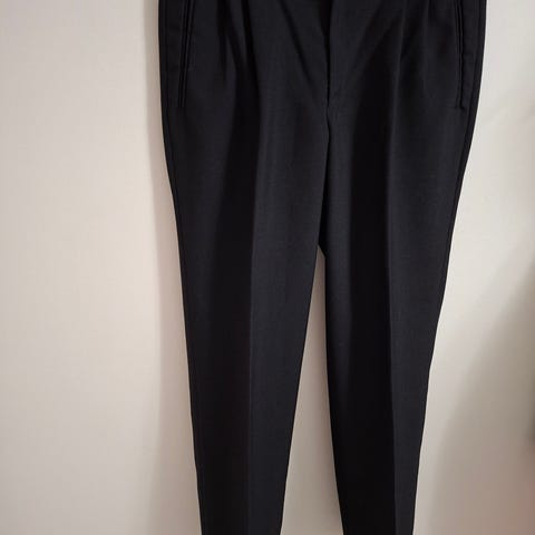 Martinelli merkkiset mustat suorat housut. Materiaali 55% polyester 45% villa. Koko 50C.