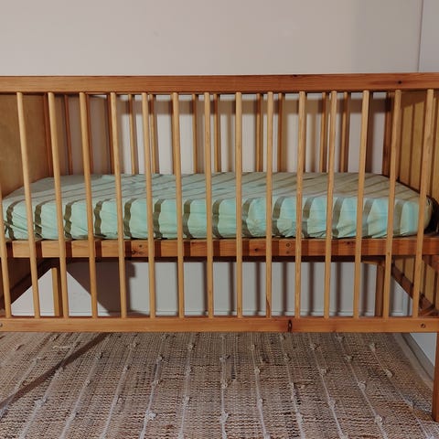 Kaunis vanha ensipinnasänky. Tukeva ja ehjä. Juuri maalattu uudelleen, kaunis vanha vihreä sävy.