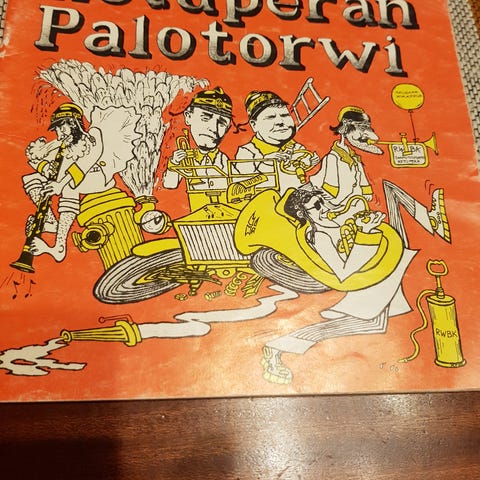 Kirjassa on melkoisesti kuvia ja mainoksiakin, mutta myös retuperäläisellä huumorilla höystettyä tietoa soittokunnan historiasta. 128 sivua.