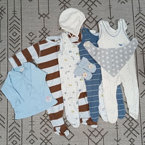 Kuutti body 50/56, persikka, käyttämätön. Aarre body jatkopalalla 62/68 keltainen, käyttämätön. Aarre body jatkopalalla oranssi, 62/68, muutaman kerran käytetty. Kuutti potkuhousut 50/56 persikka, käyttämätön.