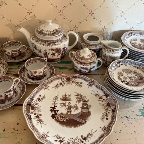 Täysin ehjät, liemikulho, 4 syvää lautasta ja 1 asetti. Kaikissa Arabian piippuleima 24.