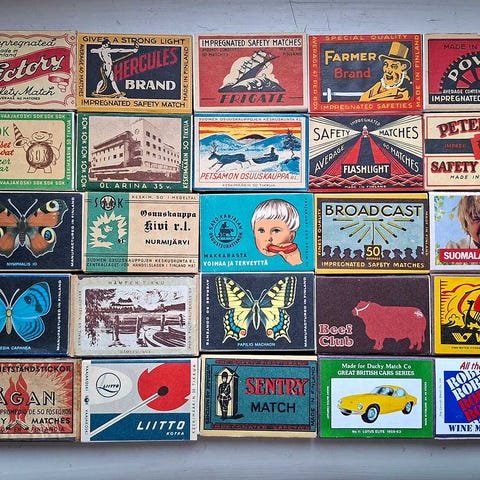 1900 luvun alkupuoliskon tulitikkuaskien keräilyvihko. kunto ikäänsä nähden kohtuullinen, irtosivuja. vihko täysi.