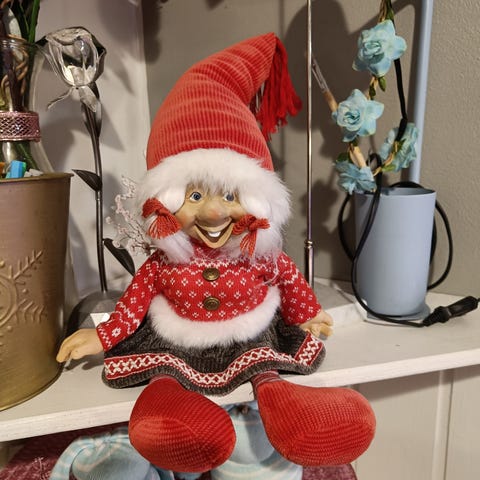 Talvinenkuva pakkaspäivä ja tonttu ulkona paperikuva. L75 K47cm