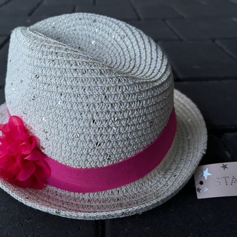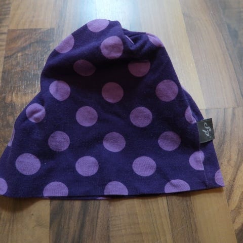 Violetti lasten hattu. Muutama sydän on irronnut.