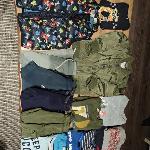 Myydään kuvanmukainen tyttöjen/poikien monipuolinen vaatepaketti koot 86-98 cm.