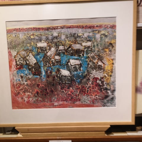 Puupaloilla koristeltu kehys, lasitettu, painokuva, koko 23x29 cm.