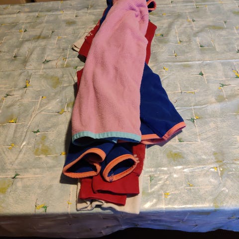 Käytettyjä, pestyjä vaatteita.