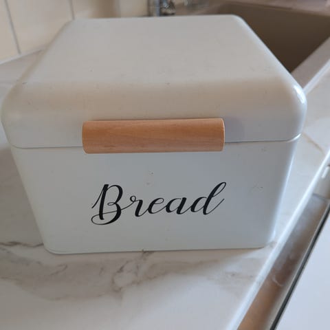Valkoiseksi maalattu leipälaatikko .pituus 37.5cm
