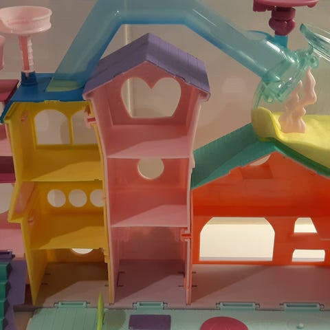 Myydään LPS-talo, leveys n. 24cm + liukumäki. Korkeus n. 18.5 cm, syvyys n. 23cm.