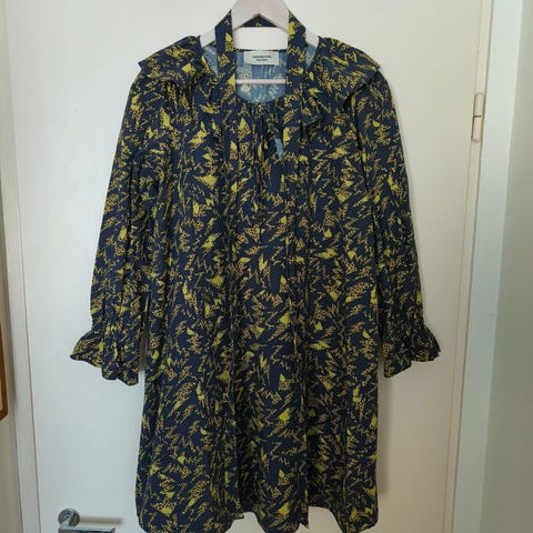 Ihana IVANAhelsinki -mekko. Koko noin 38-40 (kokolappu puuttuu). Väri: Vihreä-valkoisilla palloilla.