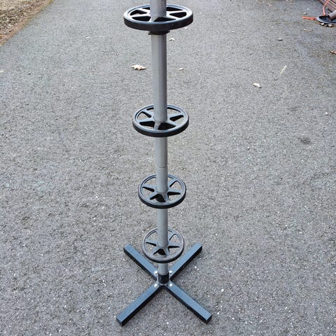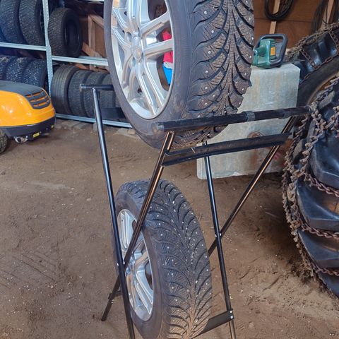 Myydään auton renkaiden säilytysteline. (Teline on purettu osiin ja yksi ruuvi puuttuu, mutta ei haittaa toimintaa).