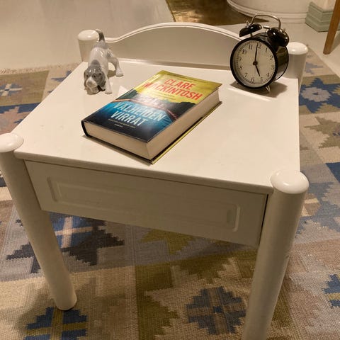 Kuvan mukainen yöpöytä,maalattu valkoinen. Koko korkeus n.80cm. vain haku ei toimitusta. Maksu käteisenä.
