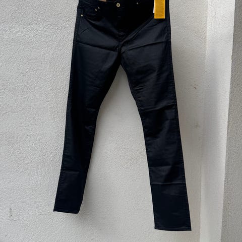 Tummanharmaat RAW 3301 TAPERED farkut, joissa pillipuntit. Joustavaa farkkukangasta.