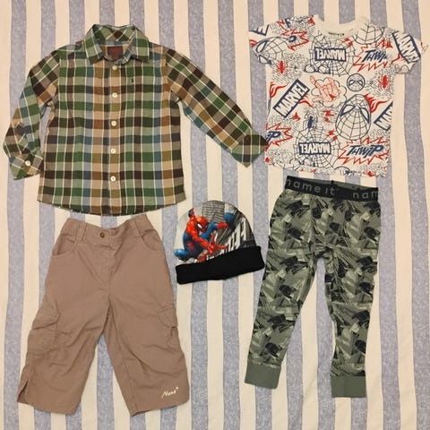 Tarkastan vielä että kaikki näistä varmasti löytyy, jotkut kuravaatteet sain myytä jokin aika sitten, mutten muista menikö laatikkoon vahingossa jotain muutakin.