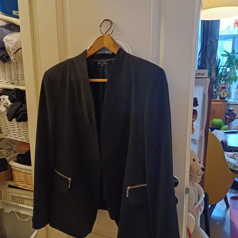 Tummansininen, valkoisia pilkkuja, kevyesti topattu takki. Suljetaan vetoketjulla. Koko 48. Merkiltään Create. Siisti, ollut päällä vain kerran.