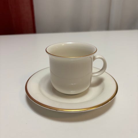 Vanha valkoinen / keltainen Rörstrand Fokus kuppi 5 e