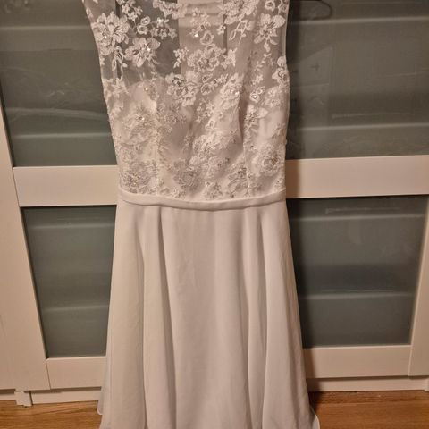 Myydään Kairi Vilderson suunnittelema kaunis valkoinen juhlamekko koko 36. Käytetty vain kerran joten mekko on käytännössä uusi. Mekko on moitteettomassa kunnossa ja pesty ennen myyntiä. Mekkossa on kaunis struktuuripintainen kangas (kts. 4. kuva). Matariaali hieman joustaa: 68% puuvilla, 30% polyesteri, 2% elastaani. Mekon reuna on musta. Selässä on piilovetoketju. Näytävä vyötärölinja.