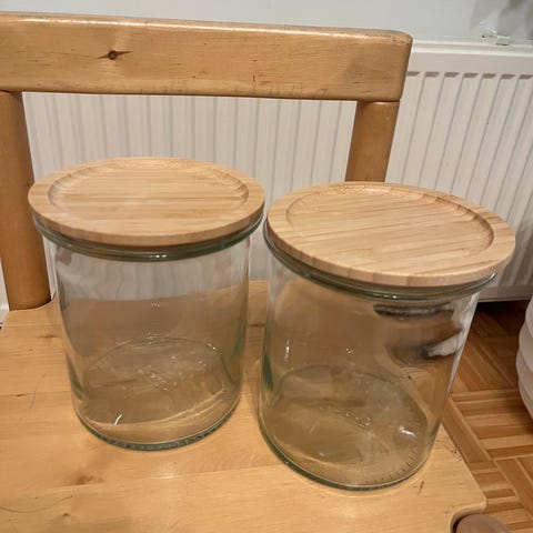 Myydään kuvan setti Ikean lasisia säilytyspurkkeja.