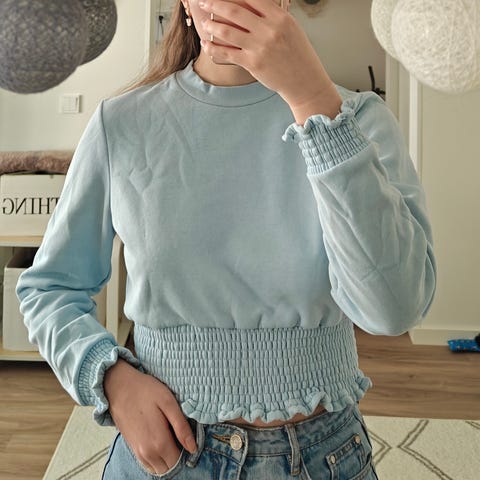 Vähäisessä käytössä ollut Terranova merkkinen pitkä, taskullinen collegepaita, joka on väriltään tummanharmaa. Edessä printti, olalla ja pääntiellä niitti koristeet. Helmassa ja hihansuissa resorit. Rinnanympärys 102 cm ja pituus olalta-helmaan 77 cm.