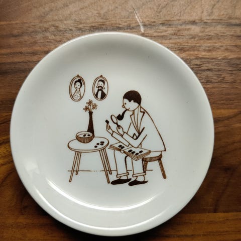 -Riihimäen Lasin pieni Sota-lautanen halkaisija n. 11 cm.