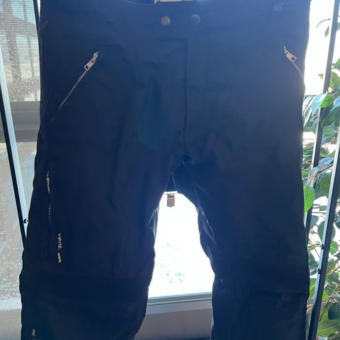 Käyttämättömät unisex moottoripyörähousut. Polvissa ja lonkissa Irrotettavat suojat. Housuissa on sisällä vedenpitävät irrotettavat sisävuorihousut. Lahkeet saa vetoketjuilla katkaistua shortsimittaisiksi. Housut saa vetoketjulla liitettyä ainakin Lindstrandsin (ja ehkä Halvarssonsin) takkiin.