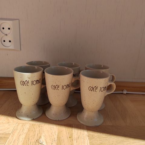 pirteät 8 mokkakuppia lautasineen eli 2 jokaista väriä.